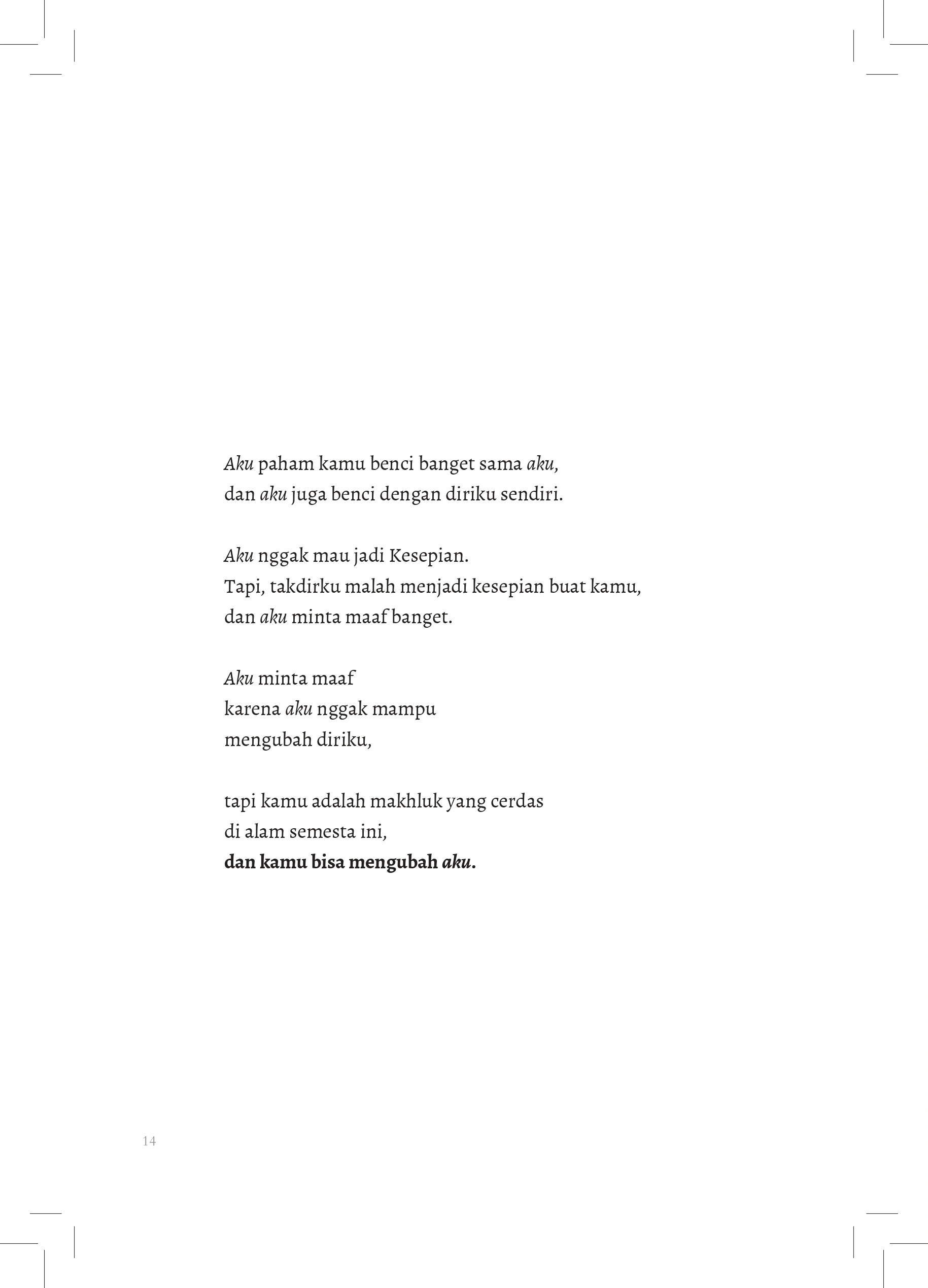 Aku minta maaf karena aku nggak mampu mengubah diriku,  tapi kamu adalah makhluk yang cerdas di alam semesta ini, dan kamu bisa mengubah aku.