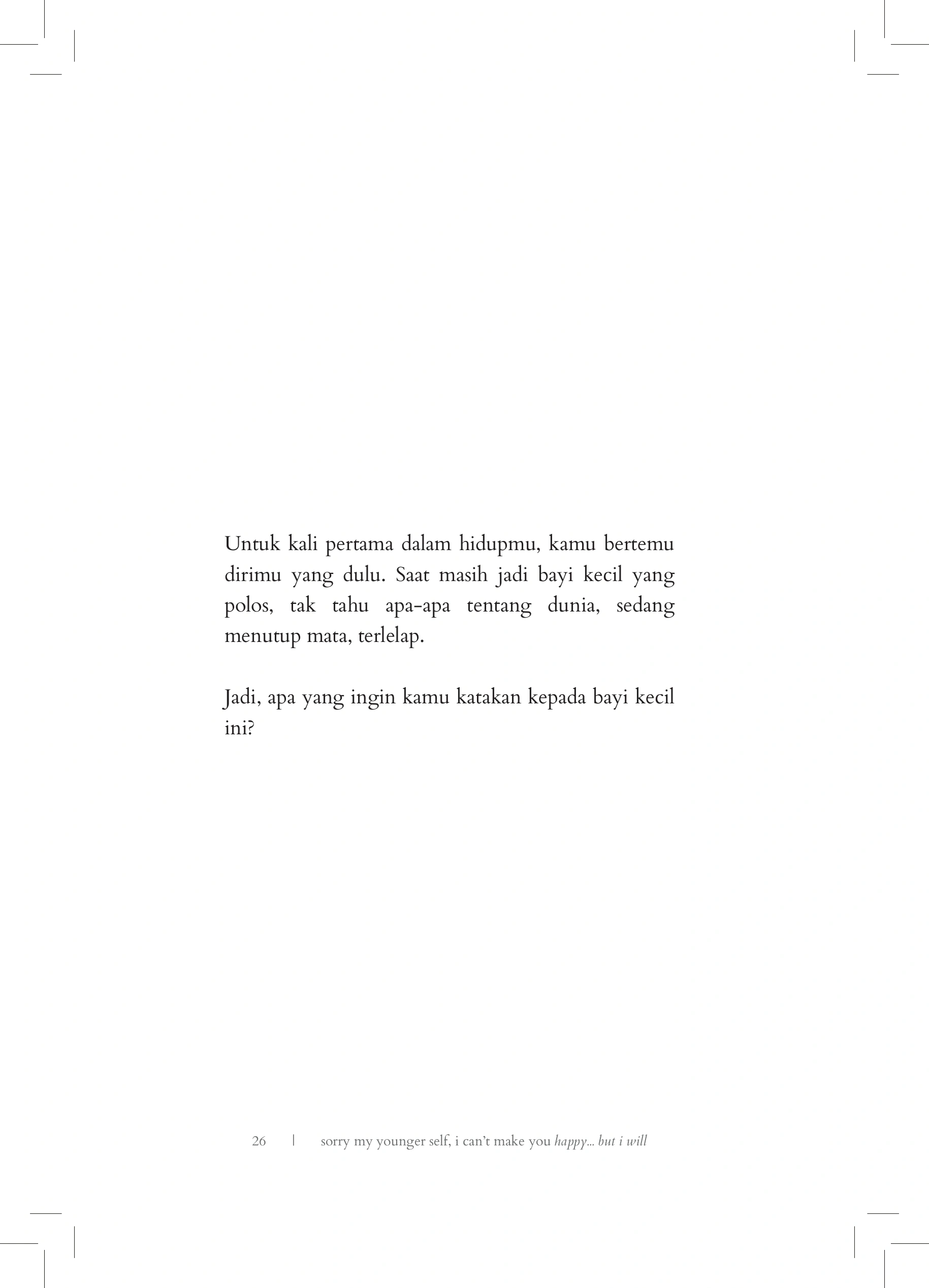 Untuk kali pertama dalam hidupmu, kamu bertemu dirimu yang dulu. Saat masih jadi bayi kecil yang polos, tak tahu apa-apa tentang dunia, sedang menutup mata, terlelap.