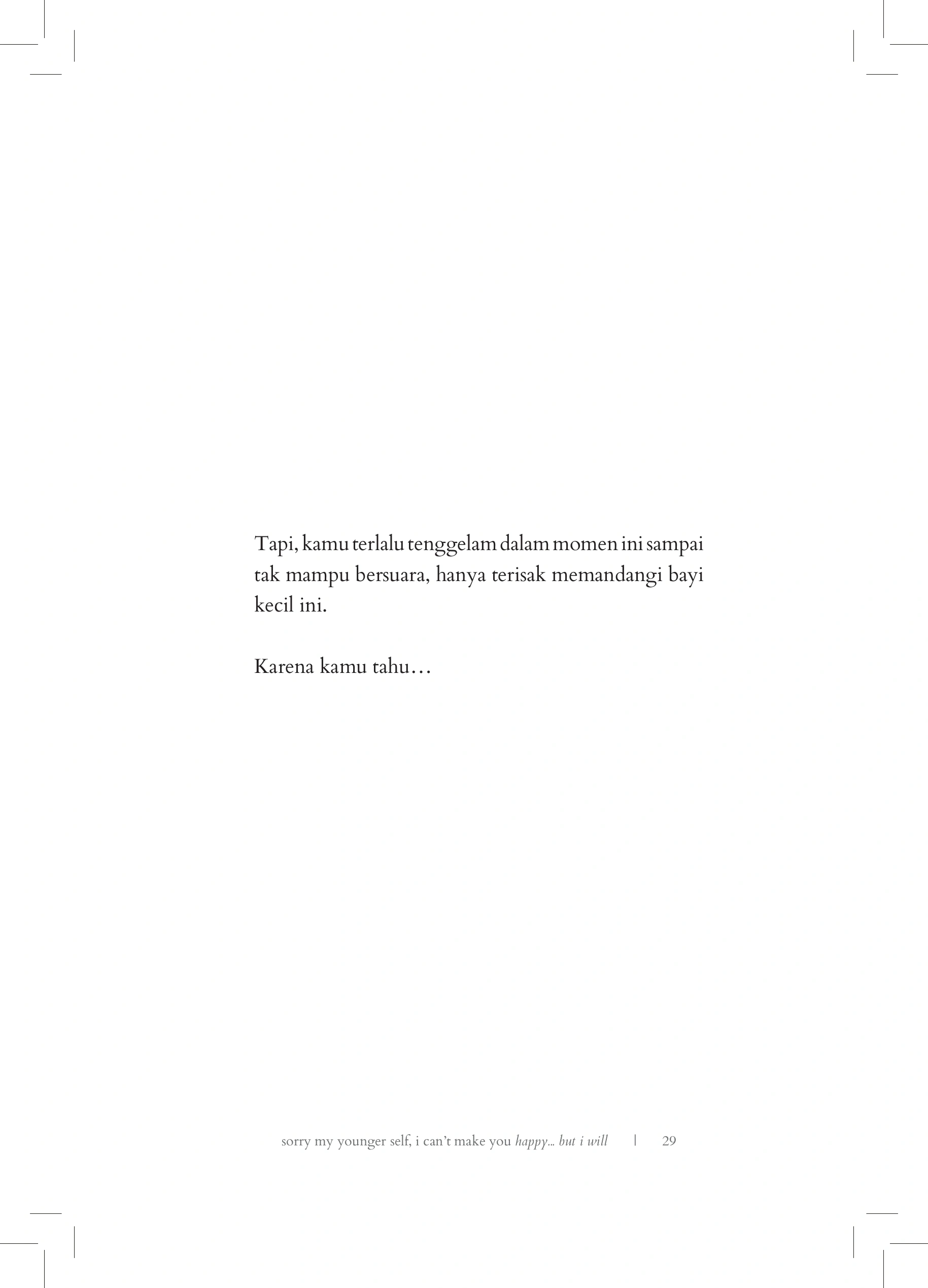 Tapi, kamu terlalu tenggelam dalam momen ini sampai tak mampu bersuara, terisak memandangi bayi kecil ini.